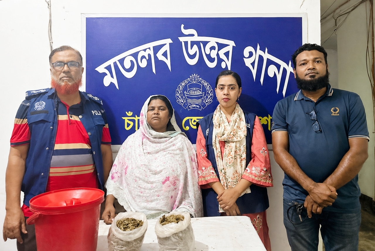 চাঁদপুরের মতলব উত্তরের ছেংগারচর পৌরসভায় অভিযান চালিয়ে দেড় কেজির বেশি গাঁজাসহ এক নারীকে আটক করেছে পুলিশ। এ সময় তার স্বামী রোকন মোল্লা (৬০) পুলিশের উপস্থিতি টের পেয়ে পালিয়ে যান।